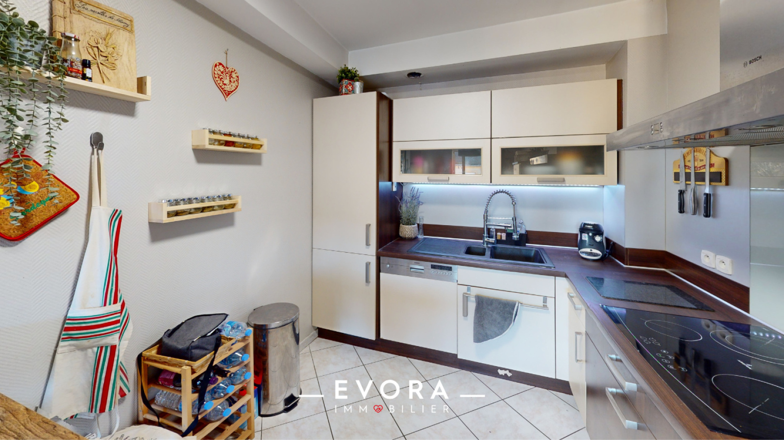 - Une cuisine équipée ouverte sur un lumineux séjour avec accès à un balcon